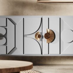 Mosiężny uchwyt meblowy lub dekoracja ścienna ArtSun to hołd oddany słońcu, inspirowany stylem art deco. Rzeźbiony i wytwarzany tradycyjną technologią odlewniczą w Polsce.