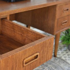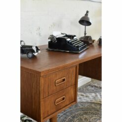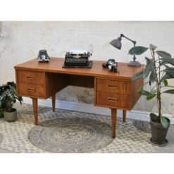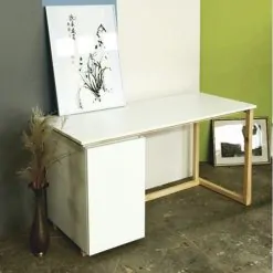 Biurko pojemne, solidne i jednocześnie – dzięki jasnej barwie – lekkie. Wykonane z przepięknego, naturalnego drewna bukowego pokrytego fornirem. Posiada wpuszczane uchwyty, również wykonane z drewna. Podzielony jest na trzy części – środkową, z dużą przestrzenia na nogi, oraz boczne, z których każda wyposażona jest w dwie szuflady. Wygodnie się przy nim pracuje, czyta, odrabia lekcje, pisze na komputerze oraz pije popołudniową kawę. Jest stworzone dla miłośników nietuzinkowych rzeczy.