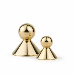 Drobna gałka meblowa w kształcie stożka zakończonego kulką. Wykonana z mosiądzu, dostępna także w większym rozmiarze – Circus Dot.