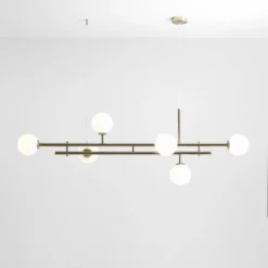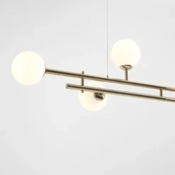 Designerska lampa wisząca z kolekcji Harmony, to gwarancja doznań estetycznych. Delikatny złoty kolor oprawy, ciekawe ułożenie ramion oraz wysokiej jakości szkło polskiej produkcji to niewątpliwe atuty lampy. Lampa o szerokości całkowitej 150cm pięknie rozświetli przestrzeń nad stołem w jadalni lub salonie.