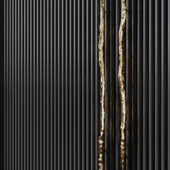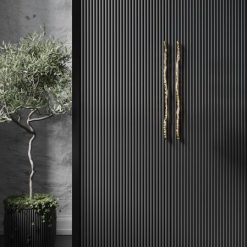 Inspirowany korą drzew wyrzucanych na brzeg z pozoru nieistotnych gałęzi podłużny uchwyt meblowy z mosiądzu. Nieodłączny element szaf o wysokich frontach wyrafinowanych wnętrz.