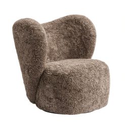 Materiał: Skóra owcza z ramą ze sklejki i wypełnieniem piankowym. Podstawa obrotowa z mechanizmem samopowrotnym wykonana z żelaza.