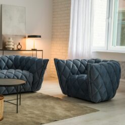 Wysoka estetyka formy – świadczą o niej unikalne przeszycia w kształcie rombów oraz podłokietniki wykończone elegancką, grubą zakładką.