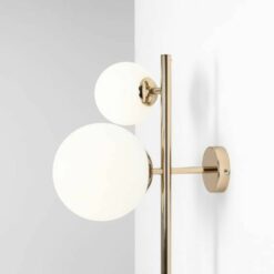 Plafon Dione to uzupełnienie spektakularnej kolekcji nowoczesnych lamp i doskonale doświetlający wnętrze kinkiet. Pięknie prezentuje się w sąsiedztwie lustra, na ścianie w salonie lub sypialni. Delikatny, złoty odcień podkreśla urok tej lampy.