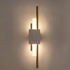 Niebanalne połącznie naturalnego marmuru oraz złotych elementów.