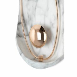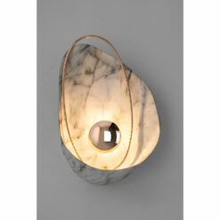 Jej główny element, przypominający wydrążoną marmurową skałę wykonany z żywicy, w połączeniu z owalną konstrukcją ze stali skrywającą źródło światła LED, tworzy niepowtarzalną formę, która przyciąga wzrok i dodaje wnętrzu oryginalności.