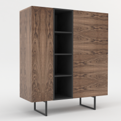 naturalny fornir orzech amerykański + MDF lakierowany RAL 9005 MAT