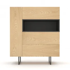 Meble do salonu z kolekcji ABATO zaprojektowane w nowoczesnej formie z zachowaniem ergonomii i funkcjonalności , wykończone są dąb naturalny , który pokryty jest matowym lakierem akrylowym.