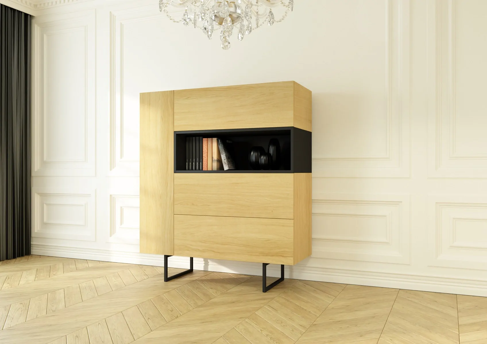 naturalny fornir dębowy lakier mat + MDF lakierowany na czarny mat