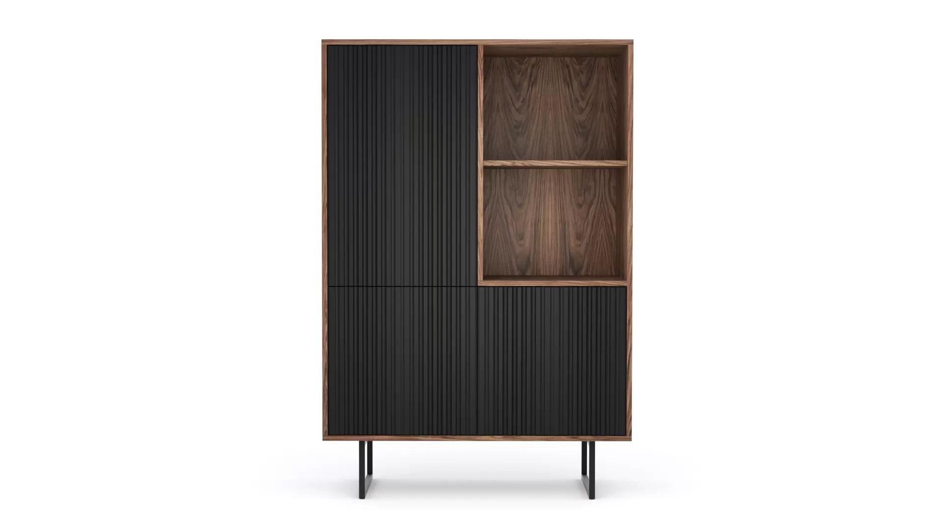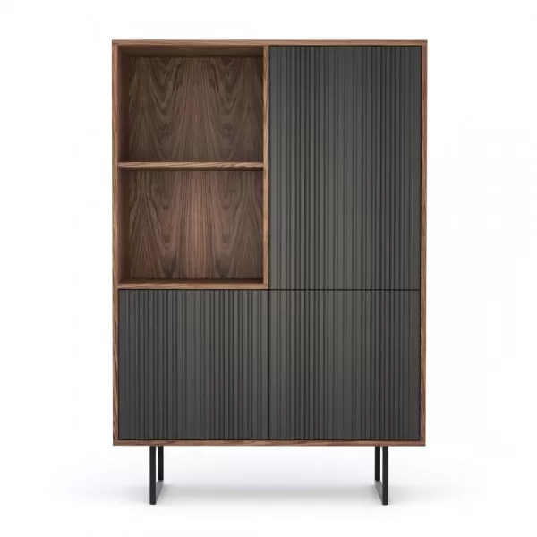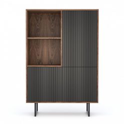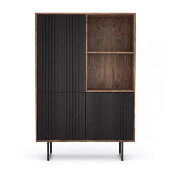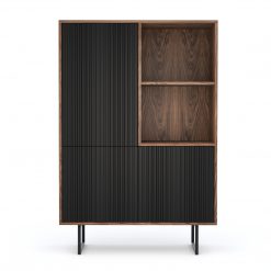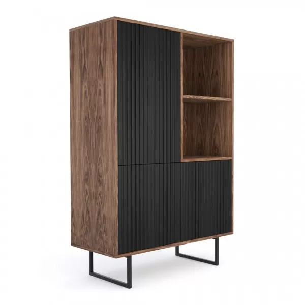 Designerska komoda ABATO , wykończona jest naturalnym fornirem orzech amerykański , który pokryty jest matowym lakierem akrylowym. Fronty wykonane są z płyty MDF co pozwoliło nam stworzyć piękny wzór 3D , co czyni ją niepowtarzalną. Fronty również pokryliśmy lakierem matowym.