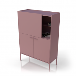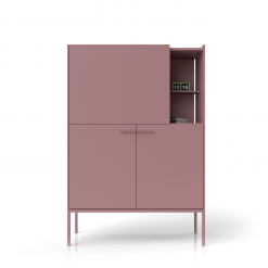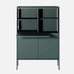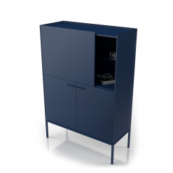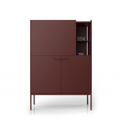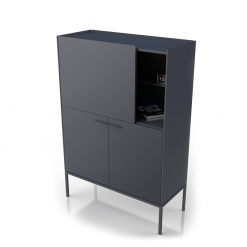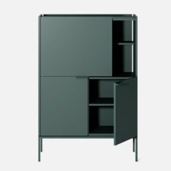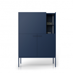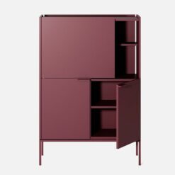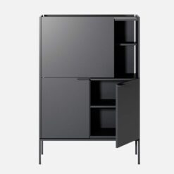 Poznaj Barr – smukłą i funkcjonalną komodę, która może odgrywać rolę sekretarzyka. Charakteryzuje ją nowoczesny i niebanalny styl, który sprawdzi się w różnorodnych aranżacjach wnętrz. Wysoka komoda składa się z dwóch szafek z uchwytami, wewnątrz przedzielonymi półkami oraz pół otwartą przestrzenią z systemem barkowym.