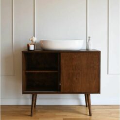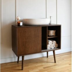 Komoda Moca daje wiele możliwości, sprawdzi się wszędzie tam, gdzie istnieje potrzeba wstawienia mebla niewielkiego, ale praktycznego, funkcjonalnego i pojemnego. Mebel został zaprojektowany aby pełnił funkcję komody łazienkowej. W meblu jest wykonany otwór na umywalkę oraz specjalna przestań na syfon. Komoda została tak zaprojektowana aby umożliwić prosty montaż umywalki oraz syfonu.