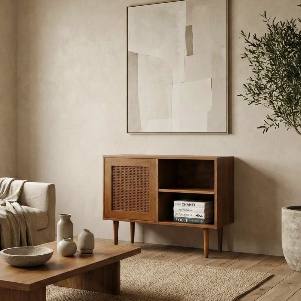 Każda z dwóch części składająca się na komodę Rina, wyposażona jest w jedną półkę, których wysokość można dostosować do swoich indywidualnych potrzeb. Całość jest bardzo estetyczna, prosta i funkcjonalna, a przez to również uniwersalna. Oznacza to, że gdziekolwiek się nie znajdzie, komoda Rina będzie służyła bardzo dobrze.
