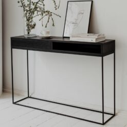 Minimalistyczna konsola w wersji z szufladą, która dyskretnie pomieści zbędne dla oka drobne przedmioty.
