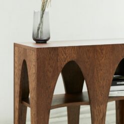 Mebel w całości został wykonany z drewna pokrytego fornirem dębowym. Konsola Virgo wykończone jest bejcą oraz lakierem.