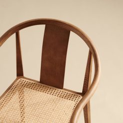 Krzesło Shanghai jest wyposażone w giętą ramę z litego drewna jesionowego i siedzisko z ręcznie tkanego rattanu. Oparcie i podłokietnik odgrywają centralną rolę w konstrukcji krzesła, nadając mu kultowy kształt i mocne oparcie. Piękno drewna jesionowego jest integralną częścią ekspresji tego krzesła, tworząc mebel z prostej konstrukcji i minimalnych detali, łączących azjatycki i skandynawski design mebli.