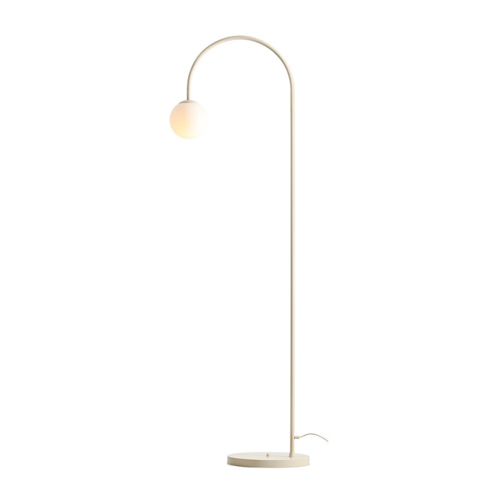 Lampa podłogowa w modnym kształcie łuku i pastelowym wykończeniu kolorystycznym to ciekawy element dekoracyjny oraz dodatkowe źródło światła w modnym wnętrzu
