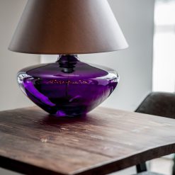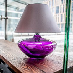 Podstawa lampy wykonana jest z bezbarwnego szkła a następnie malowana na kolor fioletowy.