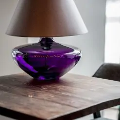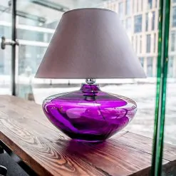 Podstawa lampy wykonana jest z bezbarwnego szkła a następnie malowana na kolor fioletowy.
