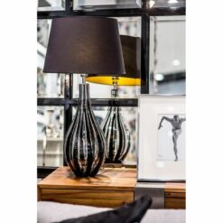Podstawa lampy wykonana ze szkła ręcznie formowanego, bezbarwnego z czarnymi pasami w szklanej masie