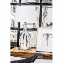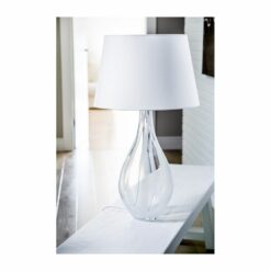 Podstawa lampy wykonana ze szkła ręcznie formowanego, bezbarwnego z białymi pasami w szklanej masie