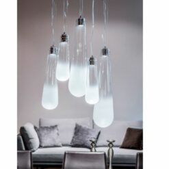 - Oprawa żarówki i zawieszenie: wykonane ze stali malowanej na kolor chromu.