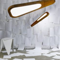 Lampa wisząca o niezwykle subtelnym kształcie. Stworzona by mogła być zawieszona nie tylko w poziomie, ale również w różnych konfiguracjach skosów i nachyleń.Produkty wytworzone w Polsce.
