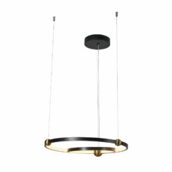 Odkryj Lampę Wiszącą Kido S LED Czarny, która jest kwintesencją nowoczesnego designu i zaawansowanej technologii oświetleniowej. Wyposażona w zintegrowane źródło światła LED o mocy 32W i jasności 1328lm w ciepłej barwie 3000K, ta lampa zapewnia optymalne oświetlenie, idealne do każdego nowoczesnego wnętrza. Kontrastujące połączenie czarnego aluminium z akcentami w szczotkowanym mosiądzu dodaje lampie elegancji i subtelnego luksusu.