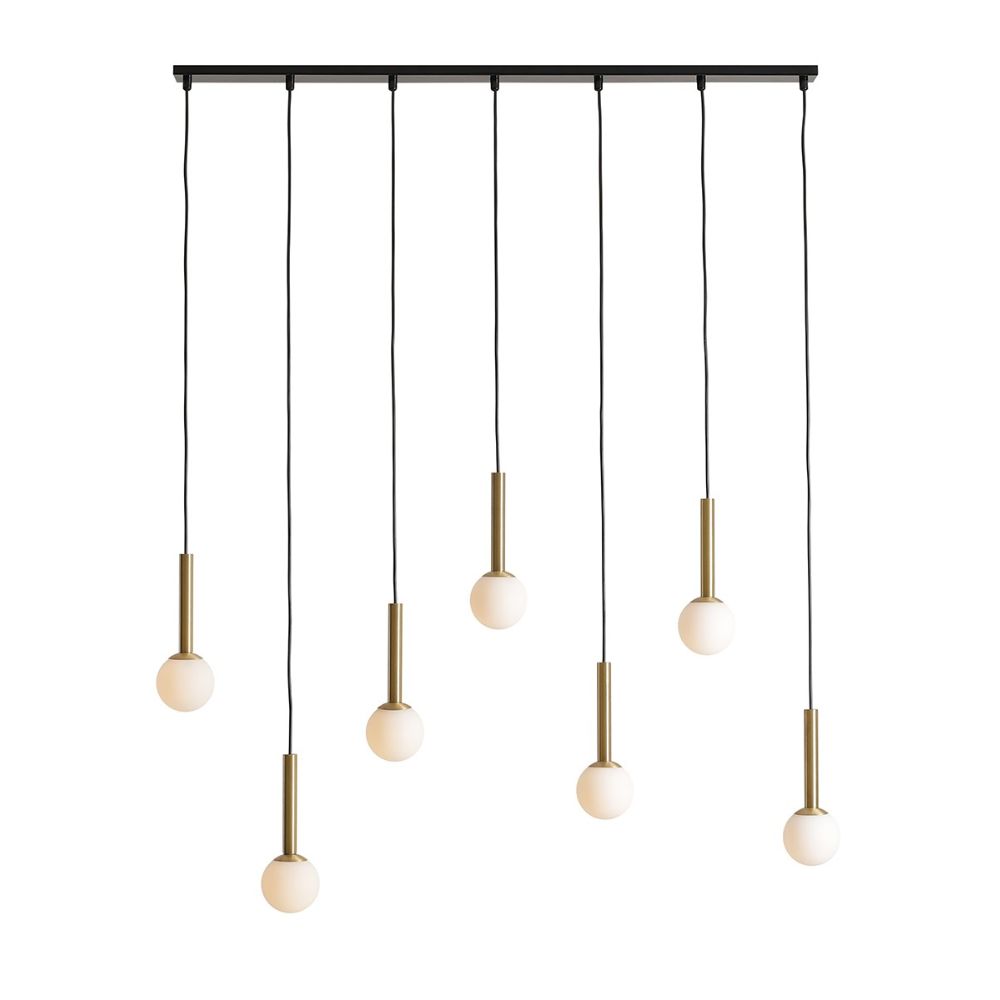 LAMPA WISZĄCA RIU 7 BLACK /BRASS to nowoczesne oświetlenie o minimalistycznym designie, które doskonale wpasuje się w eleganckie, loftowe lub industrialne wnętrza. Siedem smukłych zwisów w matowej czerni tworzy efektowną kompozycję, zapewniając przyjemne, rozproszone światło. Idealna nad stół, wyspę kuchenną lub do salonu – doda wnętrzu charakteru i stylowej prostoty.