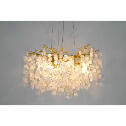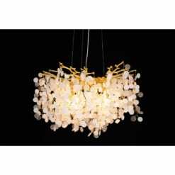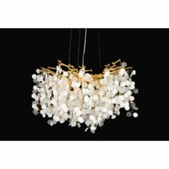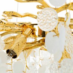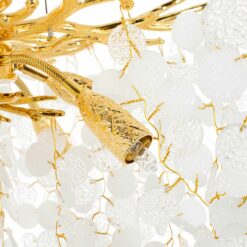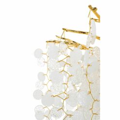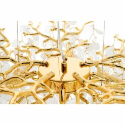 - Ekskluzywny design: Lampa Riviera wykonana jest z akrylowych kloszy, które precyzyjnie zamontowano na stalowej obręczy w kolorze złotym. Design imitujący gałęzie drzewa dodaje lampie unikalnego charakteru.