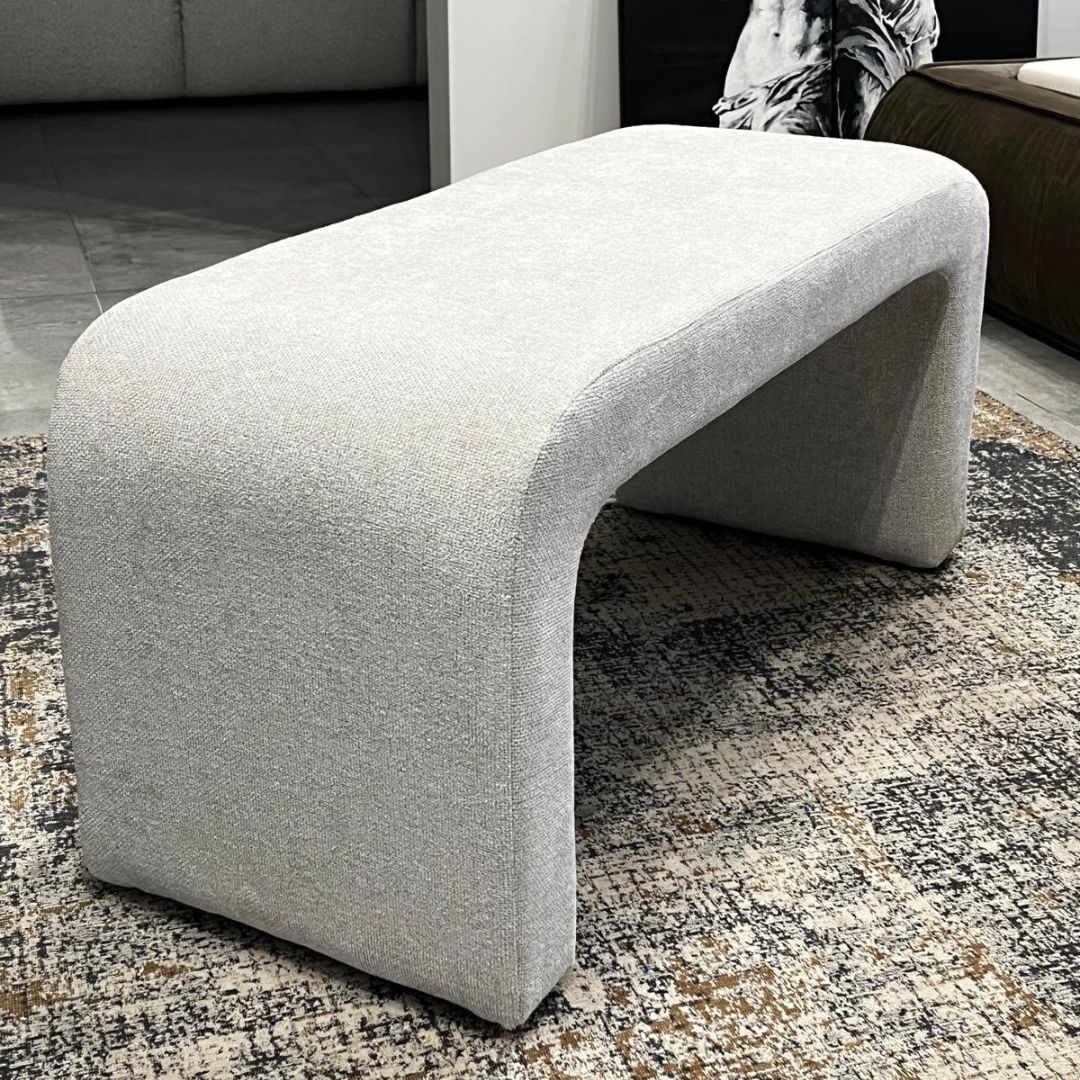 Nowoczesna ławka tapicerowana o solidnej konstrukcji, osadzona na stabilnym stelażu. Wygodne siedzisko wypełnione pianką wysokoelastyczną zapewnia komfort użytkowania.