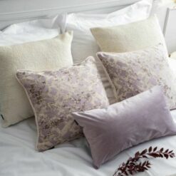 Liliowo kremowy zestaw 5 poduszek dekoracyjnych do sypialni