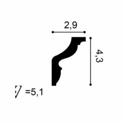 Ta klasyczna listwa z wieloma krzywiznami cyma recta tworzy idealne przejście od ściany do sufitu.