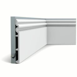 Wysoka listwa przypodłogowa SX193 z przetłoczeniami i półwałkami w górnej części. Listwa o wysokości 25 cm z miejscem na zagospodarowanie kabli. Elegancka, do klasycznych pomieszczeń.