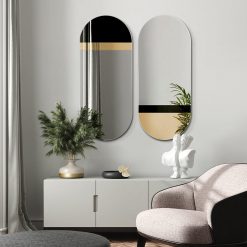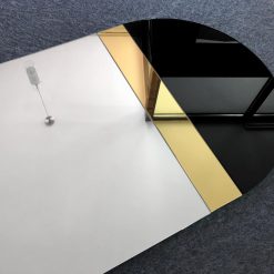 - złożone z trzech elementów sklejonych ze sobą: największy z klasycznego srebrnego lustra, mniejszy półokrąg i pasek z ozdobnego szkła (kolory i wzory do wyboru)