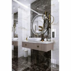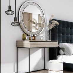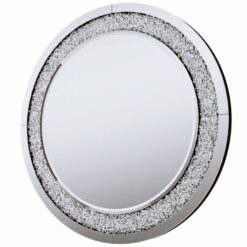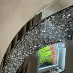 Lustro w lustrzanej ramie z kryształkami w rozmiarze 90x90cm (wymiar zewnętrzny czyli razem z ramą). Rama lustra wypełniona jest niewielkimi kryształkami, pięknie podkreśli charakter wnętrza w stylu glamour. Tafla lustra umieszczona jest na płycie MDF.