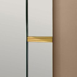 - Lustrzana rama lustra ozdobiona wstawkami z polerowanego mosiądzu.