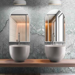 - W ramę oprawione jest wysokiej jakości bezołowiowe lustro, produkcji europejskiej. Podlew lustra zabezpieczony jest teflonem, który chroni je przed korozyjnym działaniem wilgoci. Lustro nadaje się do łazienki.