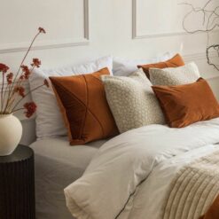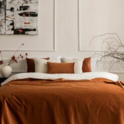 Zanurz się w luksusie i komforcie z naszym 5-elementowym zestawem poduszek do sypialni, idealnie wpisującym się w styl klasyczny oraz glamour. W tonacji miedzianej i białej, ten zestaw od razu przyciąga uwagę, a jego ciepłe, jesienne barwy dodają wnętrzu przytulności i głębi.