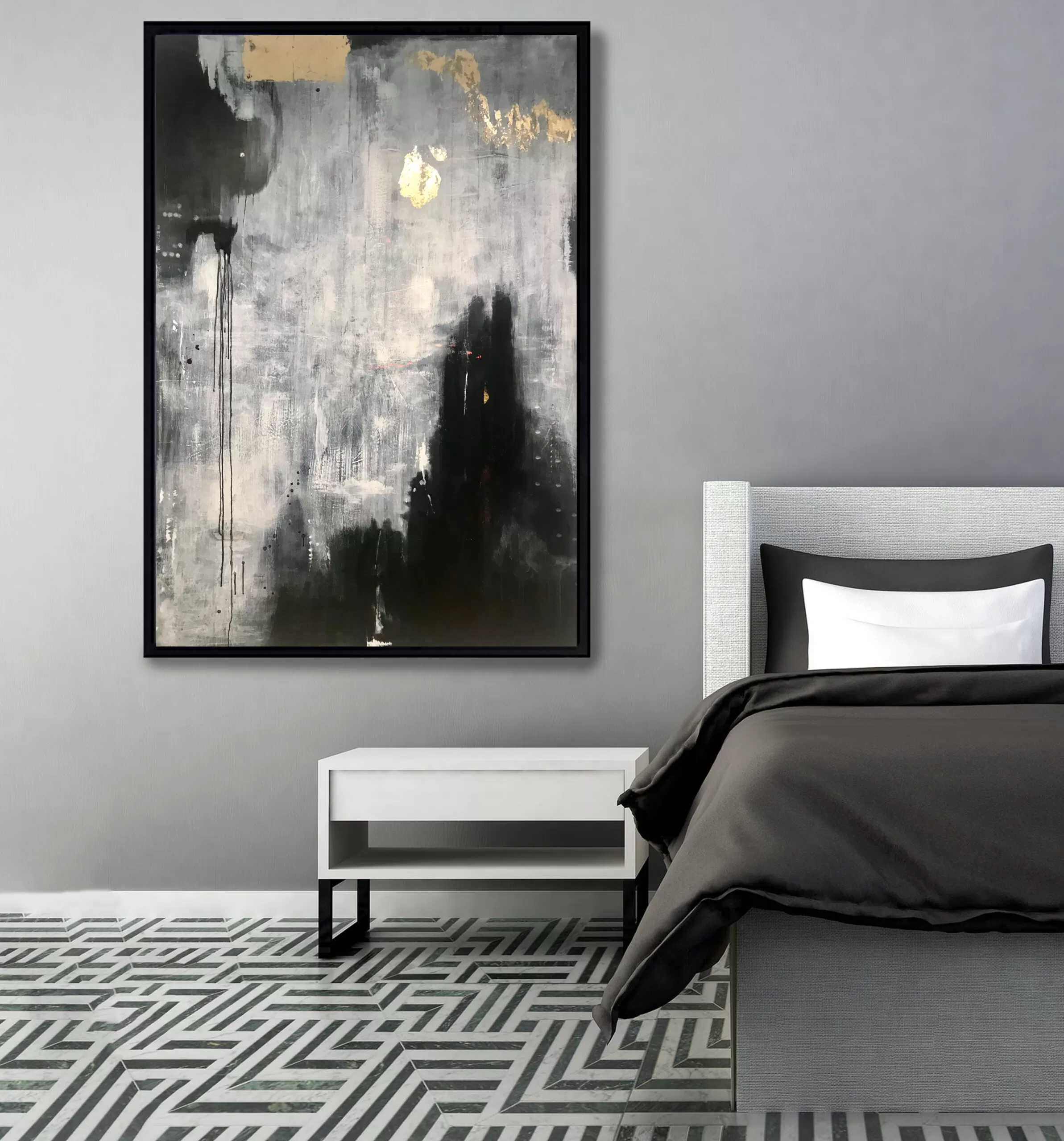 Obraz na płótni, akryl, spray, pozłotnictwo techniki własne.