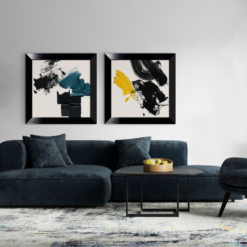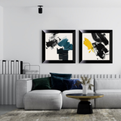 Obraz Abstract Composition no.1 to nieoczywista grafika przedstawiająca artystyczne ruchy pędzla, które zostały uchwycone w trójwymiarowy sposób dzięki zastosowaniu faktury farby. Kremowe tło dodaje elegancji i spokoju, natomiast kolory czarny i żółty wzbogacają całość i dodają dynamizmu. Obraz został umieszczony w eleganckiej, czarnej ramie z połyskiem, która idealnie podkreśla jego wyjątkowy charakter. Ramka pięknie odbija światło, co dodaje niepowtarzalnego efektu i sprawia, że obraz nabiera jeszcze większej głębi. Abstrakcyjny obraz z pewnością przypadnie do gustu miłośnikom nowoczesnego designu oraz osobom, które cenią sobie unikalne elementy dekoracyjne. Obraz doskonale sprawdzi się w salonie, sypialni lub biurze, nadając pomieszczeniu wyjątkowy klimat.