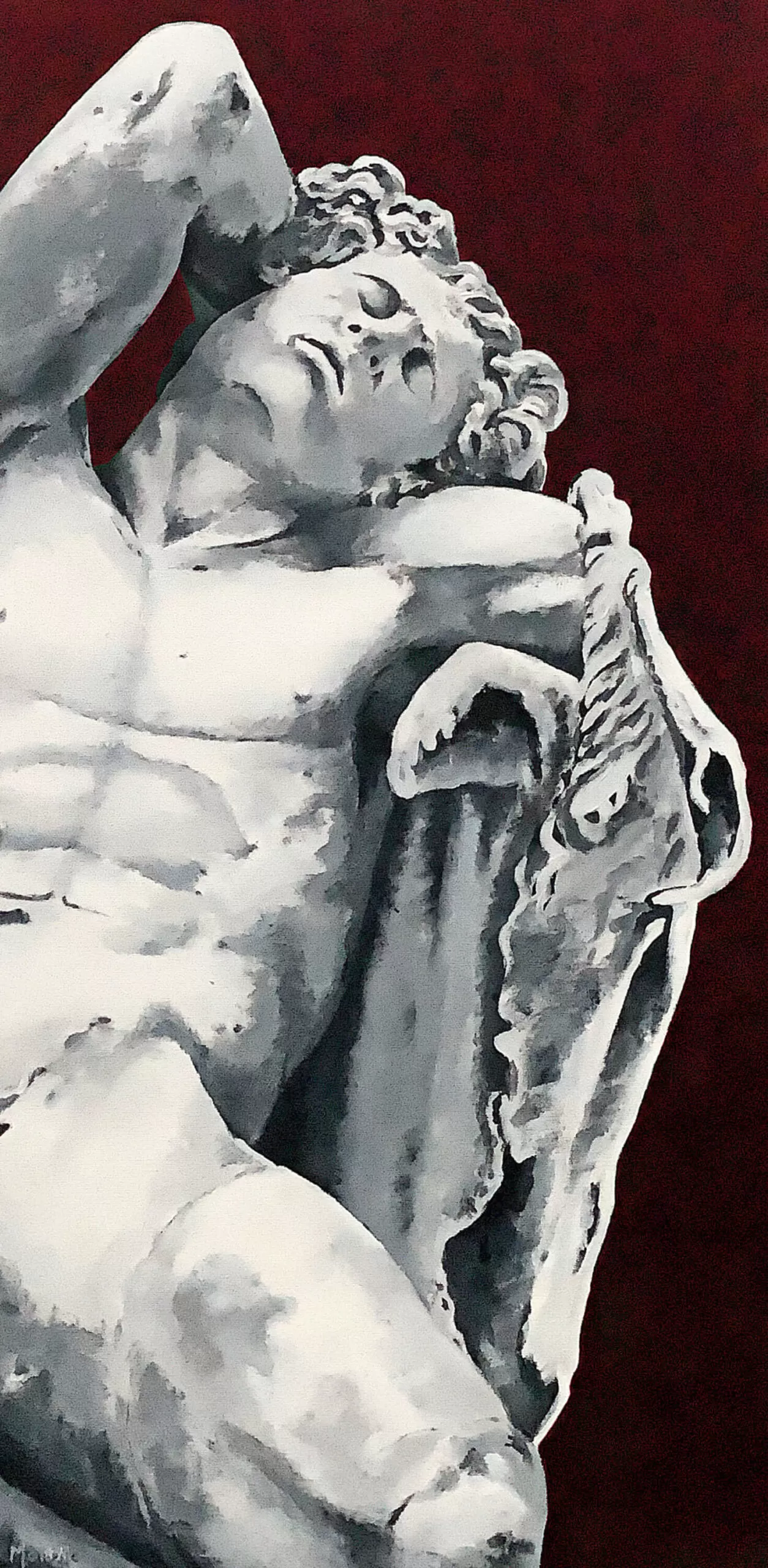“Faun” z cyklu “Color Interiors”. Obraz namalowany akrylem na płótnie. Farba nakładana warstwowo. Całość pokryta werniksem damarowym półmat.