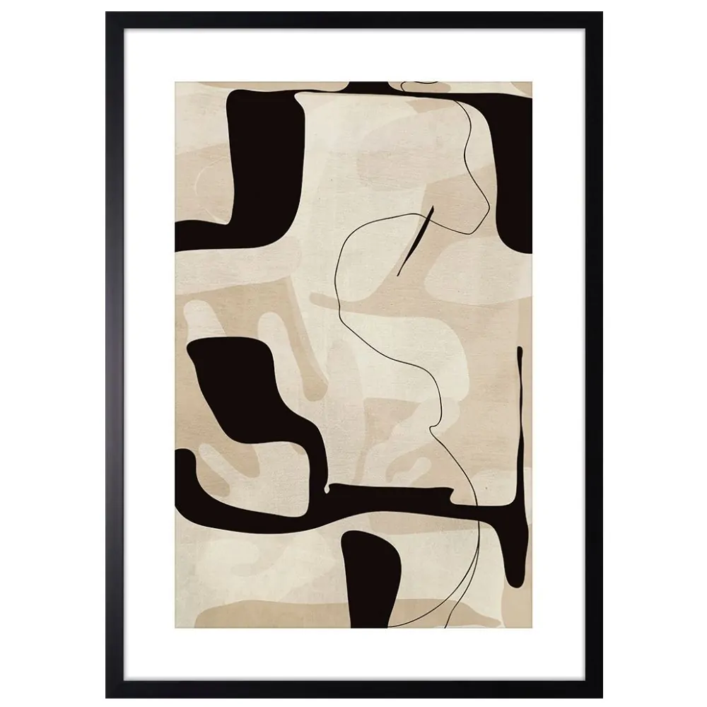 Niezwykle ciekawa kompozycja, nowoczesna w stonowanej kolorystyce. Całość na jasnobrązowym i beżowym tle z elementami czarnego koloru.