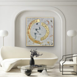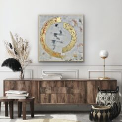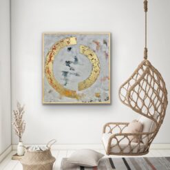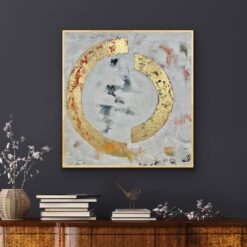 Obraz na płótnie, akryl, spray, pozłotnictwo, techniki własne.