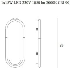 Moc/Power: 1 x 15 W LED 230V, 1050 LM, CRI 90, 3000K