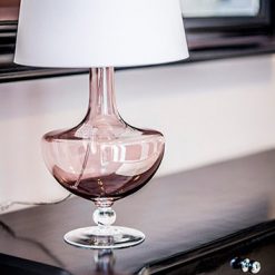 Podstawa lampy wykonana z bezbarwnego szkła, ręcznie formowanego, malowane na kolor transparentny miedziany.