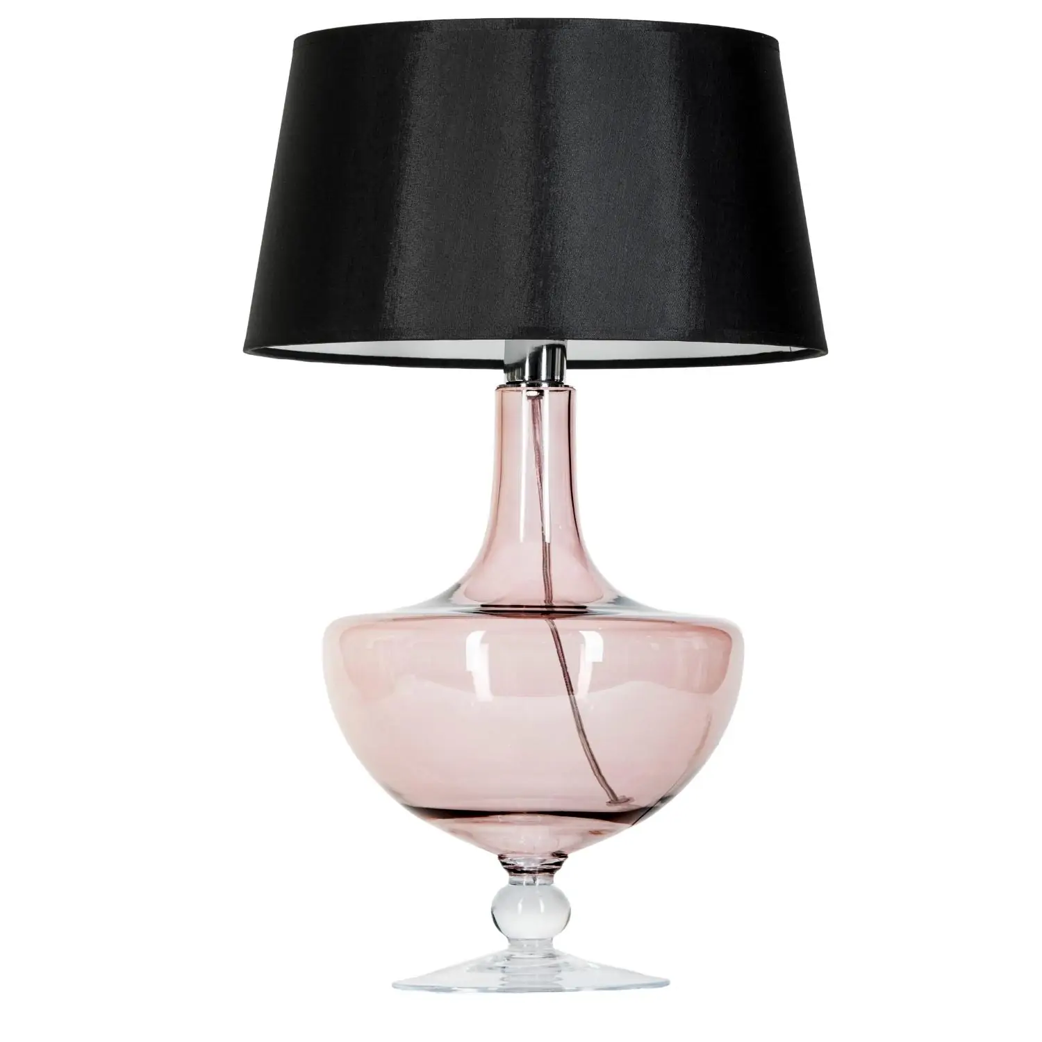 Podstawa lampy wykonana z bezbarwnego szkła, ręcznie formowanego, malowane na kolor transparentny miedziany.