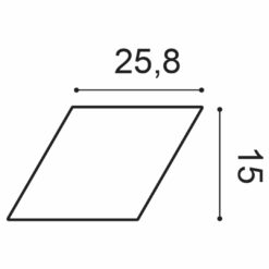 Wzór geometryczny rombu (W100 – Rombus) jest częścią kolekcji paneli ściennych 3D. To jeden ze składników niekończącej się kreatywności w ozdabianiu i może być łączony z trapezem (model W101 – Trapezium). Głównym zadaniem jest tworzenie eleganckich wzorów lub ciekawych akcentów w jasnych kolorach.