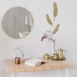 Mosiężna dekoracja ścienna wytwarzana tradycyjną technologią odlewniczą w kształcie pióra. Dzięki charakterystycznemu montażowi może być stosowana jako uchwyt do szaf o wysokich frontach. Dostępna w trzech rozmiarach.