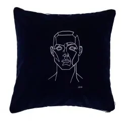 Ekskluzywna poduszka dekoracyjna z limitowanej kolekcji CHRISTMAS MAJA LAPTOS STUDIO wykonana z eleganckiego aksamitu w kolorze czarnym, wykończona delikatną złotą wypustką z pięknym złotym haftem.